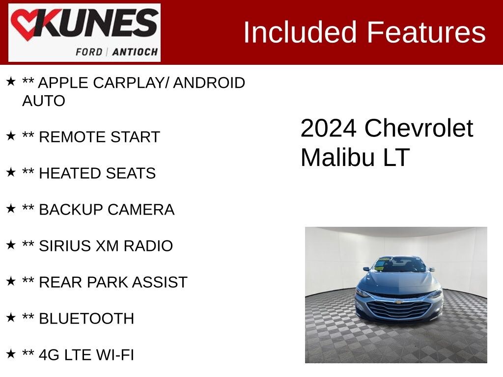2024 Chevrolet Malibu LT 1LT 1.5L DOHC CVT FWD Clean CARFAX. CARFAX One-Owner. 28/36 City/Highway MPG