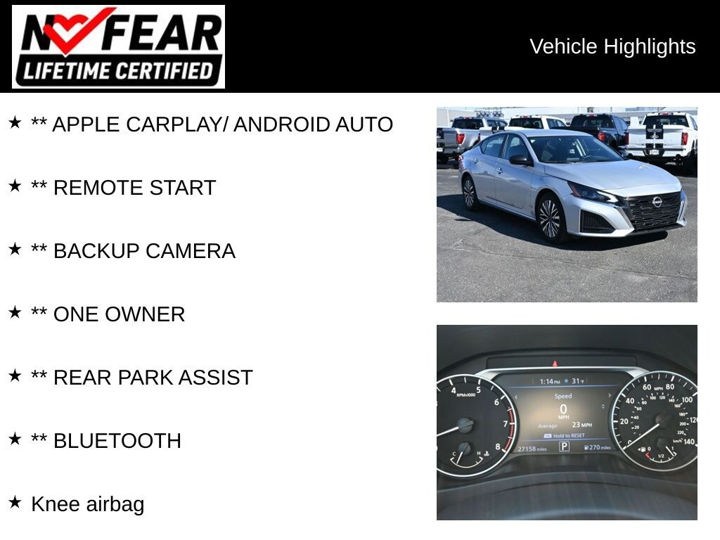 2025 Nissan Altima 2.5 SV 2.5L 4-Cylinder DOHC 16V CVT with Xtronic FWD Clean CARFAX. CARFAX One-Owner. Odometer is 2724 miles below market average! 27/39 City/Highway MPG