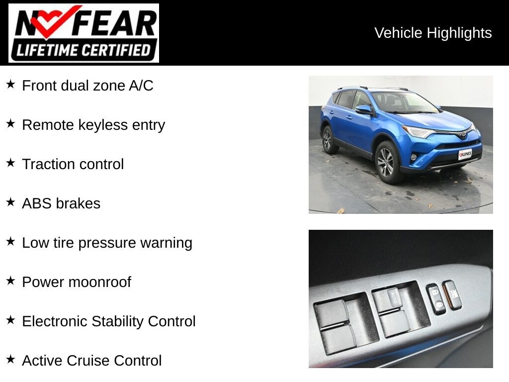 2018 Toyota RAV4 XLE 2.5L 4-Cylinder DOHC Dual VVT-i 6-Speed Automatic AWD CARFAX One-Owner. Odometer is 42492 miles below market average! 22/28 City/Highway MPG