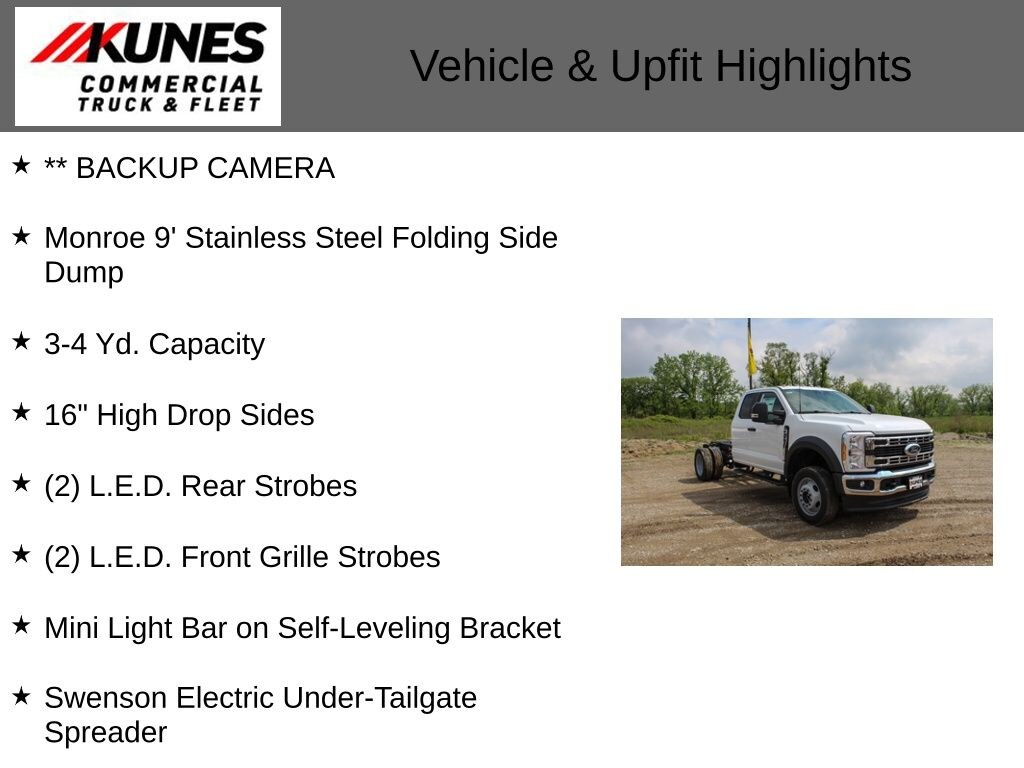 ** BACKUP CAMERA, Monroe 9' Stainless Steel Folding Side Dump, 3-4 Yd. Capacity, 16" High Drop Sides, (2) L.E.D. Rear Strobes, (2) L.E.D. Front Grille Strobes, Mini Light Bar on Self-Leveling Bracket, Swenson Electric Under-Tailgate Spreader, 4WD.