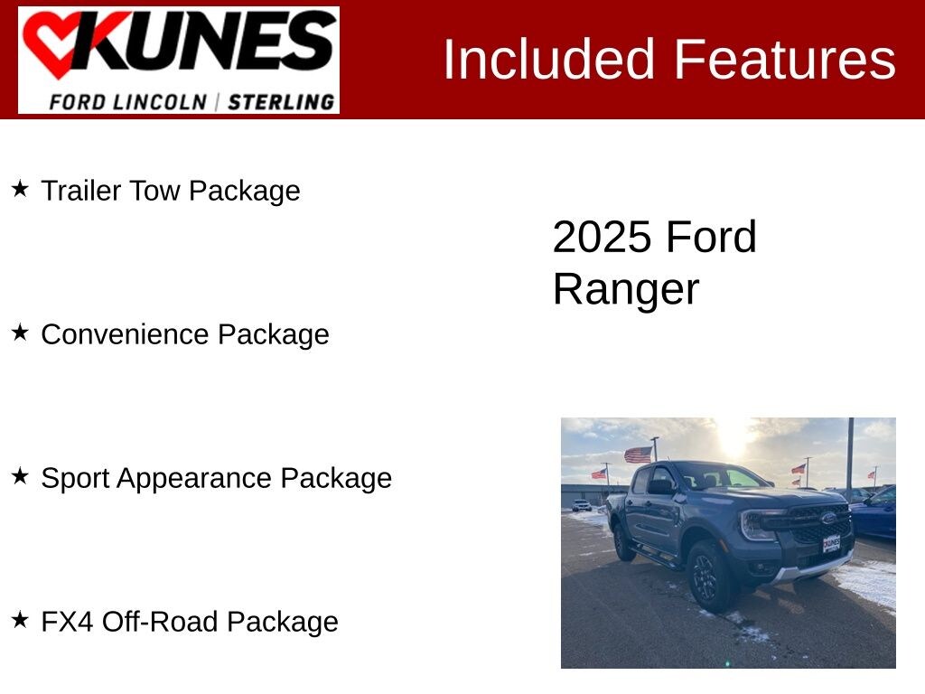 The 2025 Ranger can handle any task at work or play. Also included with every new vehicle: LIFETIME "NO FEAR" WARRANTY and AT HOME COURTESY DELIVERY! Call us for full details! We pride ourselves on honesty and integrity, but please note that mistakes or misprints due to human error are possible. Find out why our dealerships have won DealerRater.com DEALER OF THE YEAR a whopping 10 TIMES! Call, email, or live chat with one of our friendly sales professionals now to schedule your test drive! Prices shown do not include taxes, license, and title fees and a $367.70 documentary service fee, and $399 Security Fee. Price includes: $1000 - Final Days Mega Bonus Cash. Exp. 01/02/2026 $2000 - Bonus Customer Cash. Exp. 01/05/2026