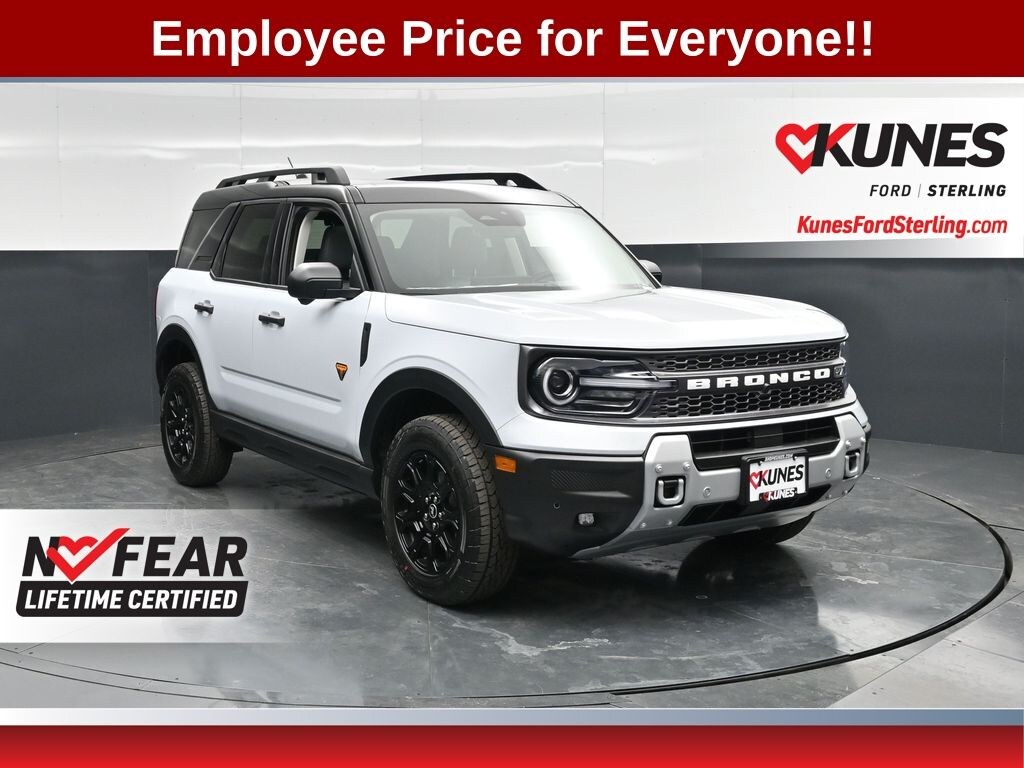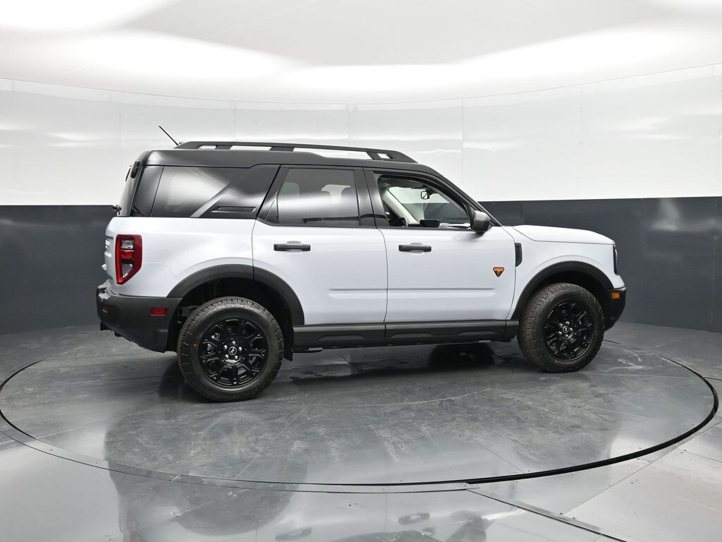 Space White Metallic 2026 Ford Bronco Sport Badlands NAVIGATION, REMOTE START, ADVANCED SAFETY Tech, HEATED SEATS, HEATED STEERING WHEEL, SUNROOF, REAR PARK ASSIST, BACKUP CAMERA, SIRIUSXM RADIO, BLUETOOTH, Bronco Sport Badlands, 4D Sport Utility, EcoBoost 2.0L I4 GTDi DOHC Turbocharged VCT, 8-Speed Automatic, 4WD, Space White Metallic, Gray Leather, Badlands Tech Package, Ford Connectivity Package (1-Year Included), Internet access capable: 5G Modem - Ford Connectivity Package, 4-Wheel Disc Brakes, 6 Speakers, ABS brakes, Air Conditioning, Alloy wheels, AM/FM radio: SiriusXM with 360L, AM/FM Stereo, Apple CarPlay/Android Auto, Auto High-beam Headlights, Auto-dimming Rear-View mirror, Automatic temperature control, Brake assist, Compass, Connected Navigation (1-Year Included), Delay-off headlights, Driver door bin, Driver vanity mirror, Dual front impact airbags, Dual front side impact airbags, Electronic Stability Control, Emergency communication system: SYNC 4 911 Assist, Exterior Parking Camera Rear, Four wheel independent suspension, Front anti-roll bar, Front Bucket Seats, Front Center Armrest, Front fog lights, Front License Plate Bracket, Front reading lights, Fully automatic headlights, Heated door mirrors, Heated front seats, Heated steering wheel, Illuminated entry, Knee airbag, Leather-Trimmed Heated Front Sport Contour Bucket Seats, Low tire pressure warning, Memory seat, Noise Reduction Module, Occupant sensing airbag, Outside temperature display, Overhead airbag, Overhead console, Panic alarm, Passenger door bin, Passenger vanity mirror, Power door mirrors, Power driver seat, Power Moonroof, Power passenger seat, Power steering, Power windows, Radio data system, Radio: HD w/B&O Sound System by Bang & Olufsen, Rear anti-roll bar, Rear reading lights, Rear seat center armrest, Rear window defroster, Rear window wiper, Remote keyless entry, Security system, SiriusXM with 360L, Speed control, Speed-sensing steering, Speed-Sensitive Wipers, Split folding rear seat, Steering wheel mounted audio controls, SYNC 4 with Enhanced Voice Recognition, Tachometer, Telescoping steering wheel, Tilt steering wheel, Traction control, Trip computer, Variably intermittent wipers, Wheels: 17" Matte Black-Painted Aluminum, Bronco Sport Badlands, 4D Sport Utility, EcoBoost 2.0L I4 GTDi DOHC Turbocharged VCT, 8-Speed Automatic, 4WD, Space White Metallic, Gray Leather, Badlands Tech Package, Ford Connectivity Package (1-Year Included), Internet access capable: 5G Modem - Ford Connectivity Package. 21/27 City/Highway MPG