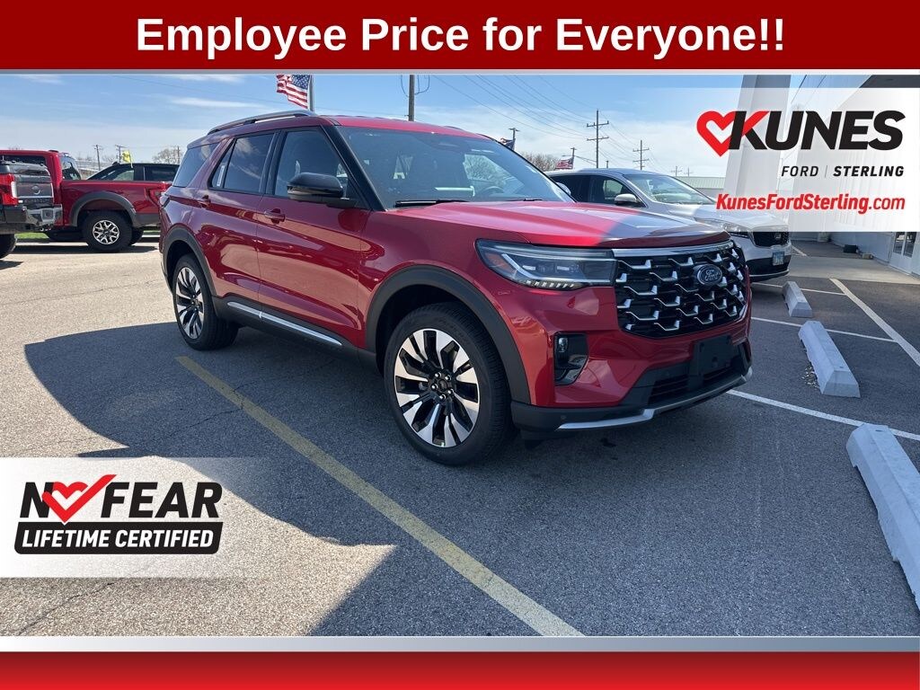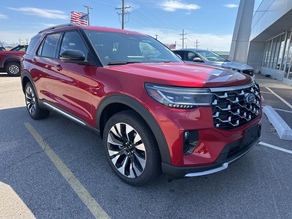 Red Metallic 2026 Ford Explorer Platinum 4WD. 20/27 City/Highway MPG